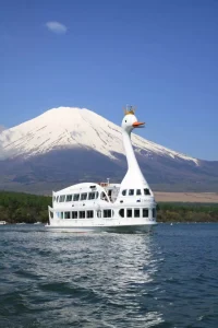 🐬 Du thuyền Swan Cruise ở hồ Yamanaka: Quý khách trải nghiệm du thuyền trên con thuyền hình thiên nga. Bên trong thuyền là không gian ấm áp với tone màu gỗ, trên thuyền ống nhòm được đặt ở khắp nơi, có ghế ngồi quan sát cho trẻ em (20 phút trên thuyền - Thuyền sẽ được thay đổi khi thời tiết không cho phép).